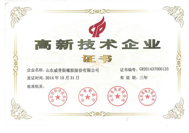 Shandong Phoebus Rubber Co.,ltd. wins the “China Famous Brand Product Award” from Shandong Province's Quality Province and Brand Promotion Group .It is an organization working towards forHigh quality products and technologies. The Finance Bureau, the Taxation Bureau, and the Science and Technology Bureau simultaneously awarded the “High-tech Enterprise Certificate.”